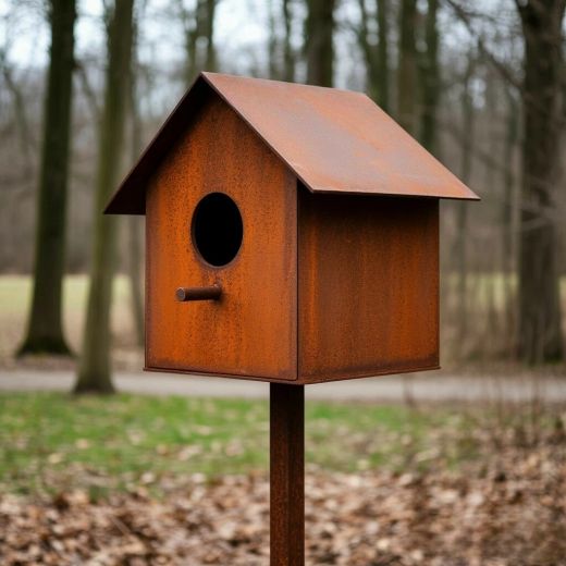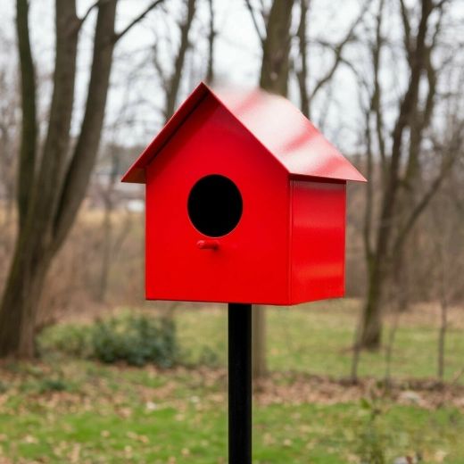 Металлический домик для птиц Стандарт на опорной ножке — это классическая кормушка для обустройства вашего сада или парка. Она служит удобным местом для гнездования и отдыха птиц, а также украшает ландшафт.