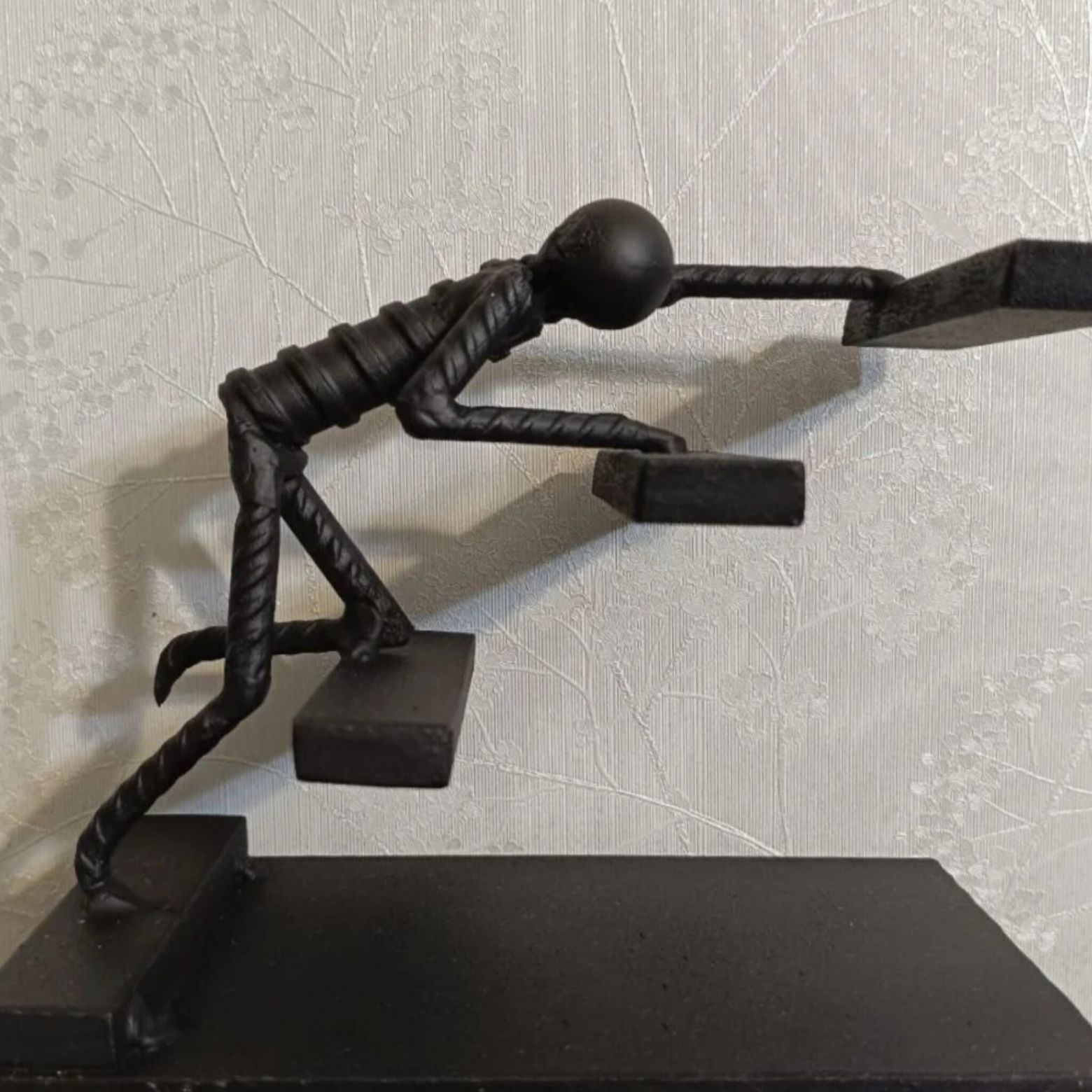 Фигурка человека из металла, расположенная на лестничной площадке, становится ярким декоративным элементом и одновременно символом восхождения. Изделие сделано вручную художником-металлистом, которое передает эмоции и характерные черты персонажа. Эта статуэтка станет великолепным подарком себе и своим близким, оживив любое помещение и добавив оригинальный штрих в ваше личное пространство.