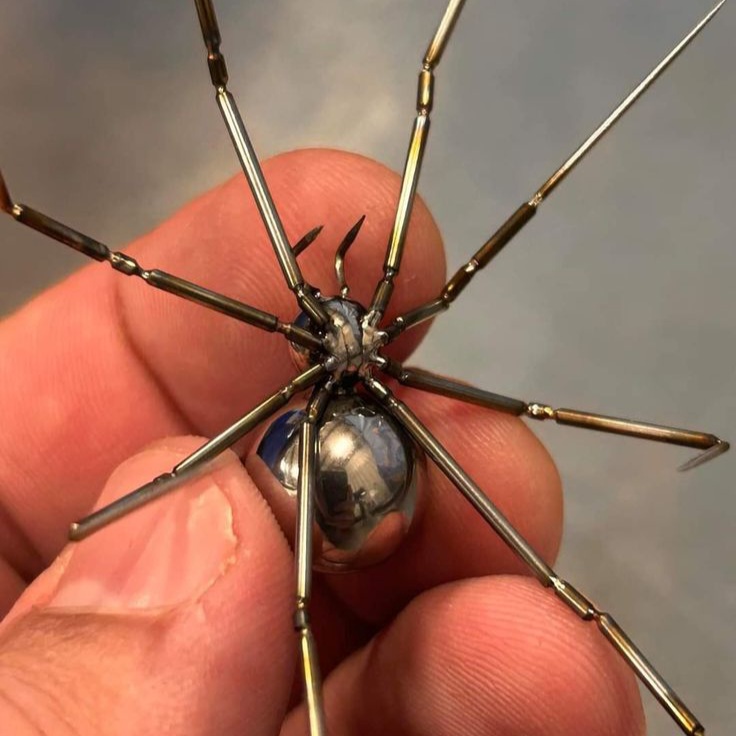Интерьерная фигурка паука Каракурт из металла станет оригинальным элементом декора вашего жилища. Сделанная своими руками, она подарит массу удовольствия в процессе творчества и станет предметом гордости среди ваших друзей и близких. Несмотря на свой устрашающий внешний вид, подобные аксессуары способны привнести элемент мрачности и очарования в любой интерьер. Неординарный дизайн, придающий комнате определенный шарм и атмосферу. Ставится на полку, рабочий стол или стеллаж, выступает элементом декора.